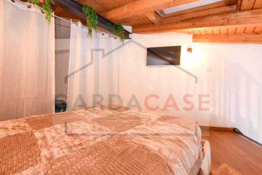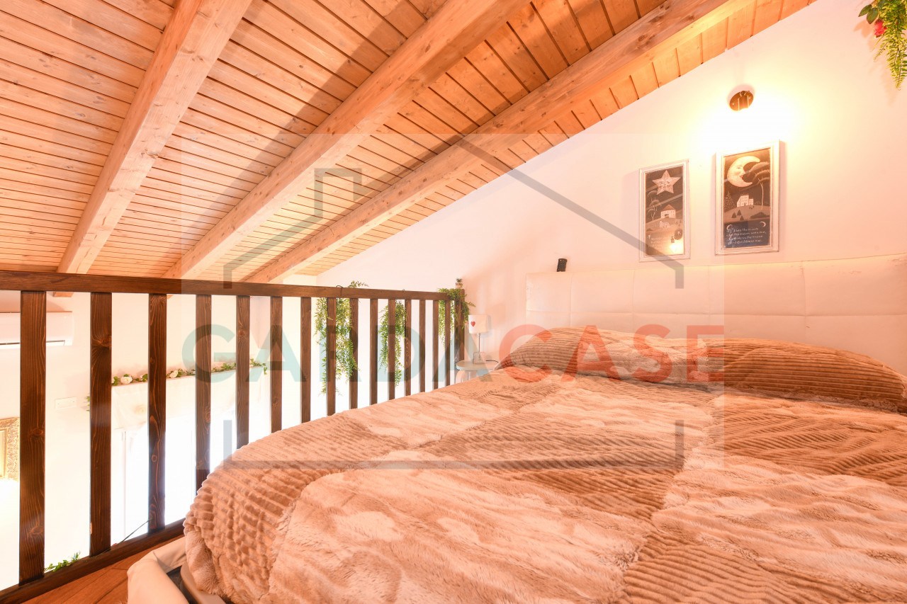 Elemento distintivo dell’immobile sono le scale in legno che conducono al soppalco, dove trova spazio la zona notte: un ambiente riservato e accogliente che dona carattere e originalità all’appartamento.